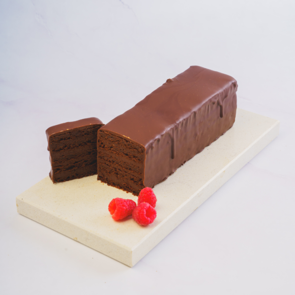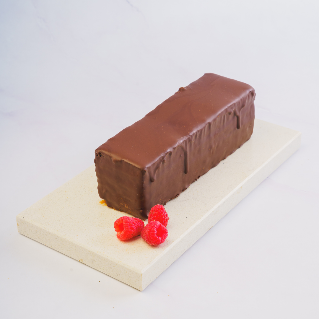 This treat is decadence at its finest. A chocolate cake layered with raspberry-infused dark chocolate ganache, all coated in premium dark chocolate for a perfect balance of bold cocoa and tanginess.